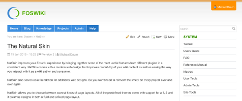 NatSkin improves your Foswiki experience by bringing together some of the most useful